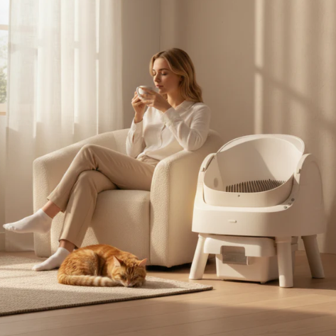 This automatic litter box cleans itself after every use, locking away odors and mess so your home stays fresh—even when life gets busy.